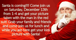 Looking to get a head start on your Christmas cards? Do your kids want to meet Santa but you want to avoid the crowds? Well you are in luck and he is back! Carlson’s favorite Santa Clause will be here from 1-4 and is excited to see all of the kids and hear what is on their wish lists for Christmas this year! Grab your family and friends and come and join us for lunch and a picture with Santa! Alexandria Leigh Photography will also be here taking professional photos of the kiddos with the man himself!